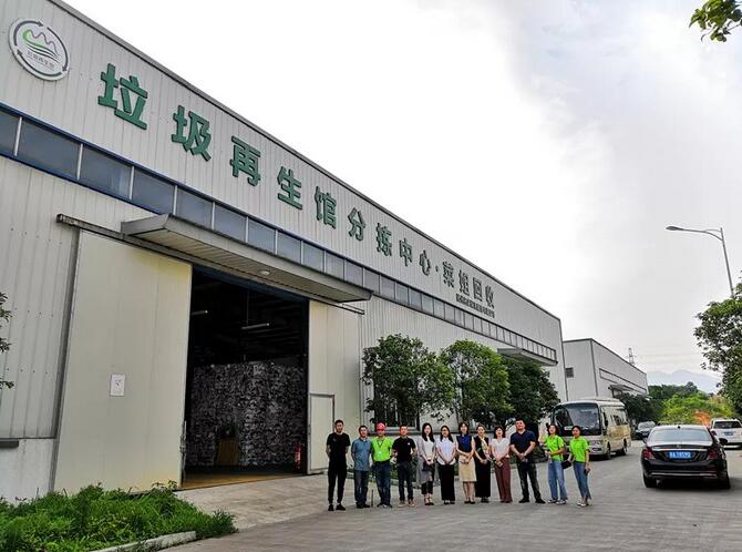 公司的“环强再生智慧回收房”已在萧山区内的18所中小学“投入使用。在走访的浙江省萧山中学里,秘书处发现学生来到回收房已经自觉认真进行垃圾分类投放,“环强再生智慧回收房”在推进当地垃圾分类教育环节上作出了自己的贡献。环强再生社区分类回收站采用自动设备回收、站点现场回收、预约上门回收三种服务运行模式为当地居民垃圾分类带来便利。环强再生分拣中心是占地10000平方米的综合性分拣中心,主要是由可回收物分拣区、大件垃圾分拣区等部分组成。在调研过程中,秘书处发现此分拣中心规划布局相对规范合理,具有行业借鉴意义。
