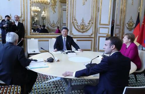 26日,国家主席习近平在巴黎同出席中法全球治理论坛闭幕式的法国总统马克龙、德国总理默克尔和欧盟委员会主席容克举行会晤。