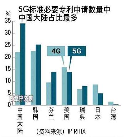 05,2019据日经中文网5日报道,德国专利数据库公司IPlytics数据显示,截至3月,5G通信所需的标准必要专利申请数量中,中国占有34.02%的比例,居于全球首位,是现有4G标准的1.5倍以上。报道介绍,标准必要专利(SEP)是在业务发展过程中不可替代的技术型专利,目前的4G智能手机供货价格的近2%是专利使用费。据日本的知识产权人士介绍,其总额达到每年1万亿日元(约合人民币606亿元)以上,拥有专利的企......