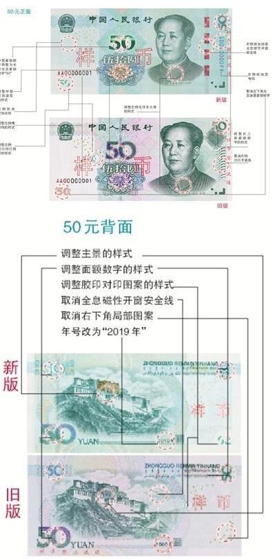 04,20194月29日,央行发布公告,定于2019年8月30日起发行2019年版第五套人民币50元、20元、10元、1元纸币和1元、5角、1角硬币。跟旧版相比,新版有何特点?中国人民银行货币金银局副局长李会锋29日表示,新版人民币在保持现行第五套人民币主图案等相关要素不变的前提下,对票(币)面效果、防伪特征及其布局等进行了调整,采用先进的防伪技术,提高了防伪能力和印制质量,使公众和自助设备易于识别,有更美观......